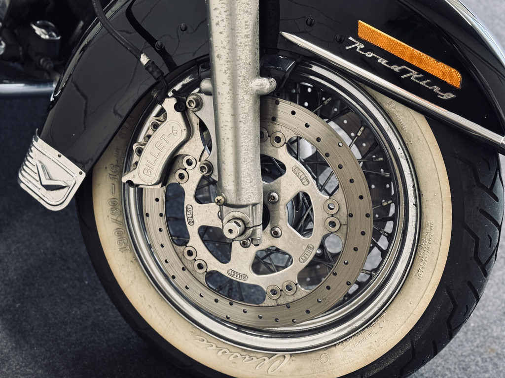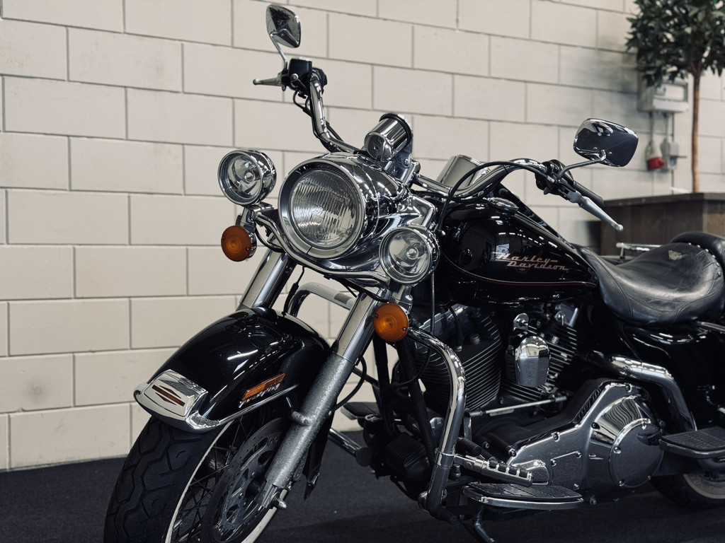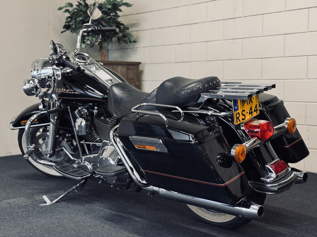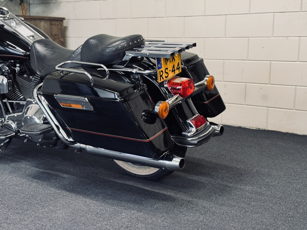 Hele fraaie Harley Davidson Road King met het gewilde motorblok en de échte HD-sound. Voorzien van schijfremmen, hardcase zijkoffers, toerenteller, etc. Deze motor is in 2012 uit Engeland gekomen en is reeds 10 jaar in bezit bij de huidige eigenaar. Ca. 500 km geleden nieuwe remblokken gekregen, achterband en oliewissel. Recent is de accu vervangen. Onderhouden bij een HD-specialist. Afneembaar windscherm is aanwezig.