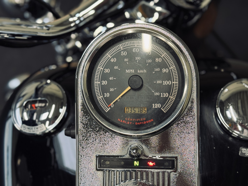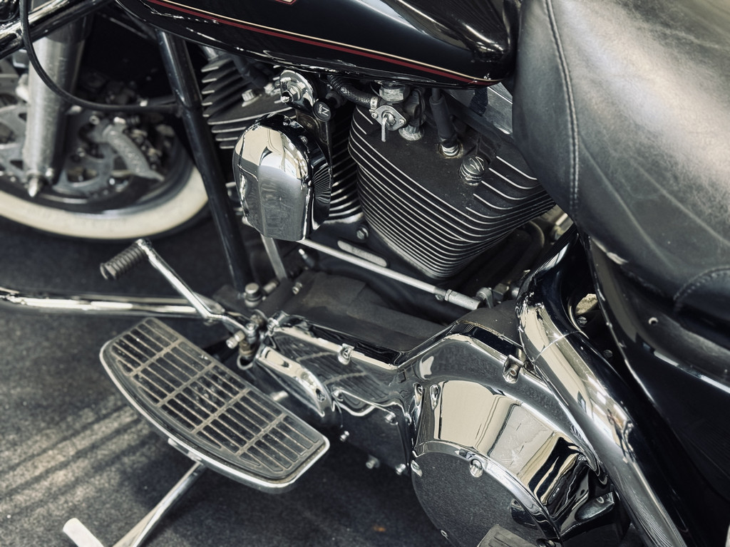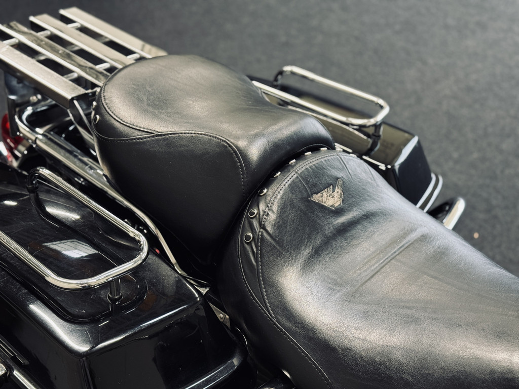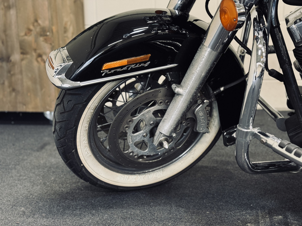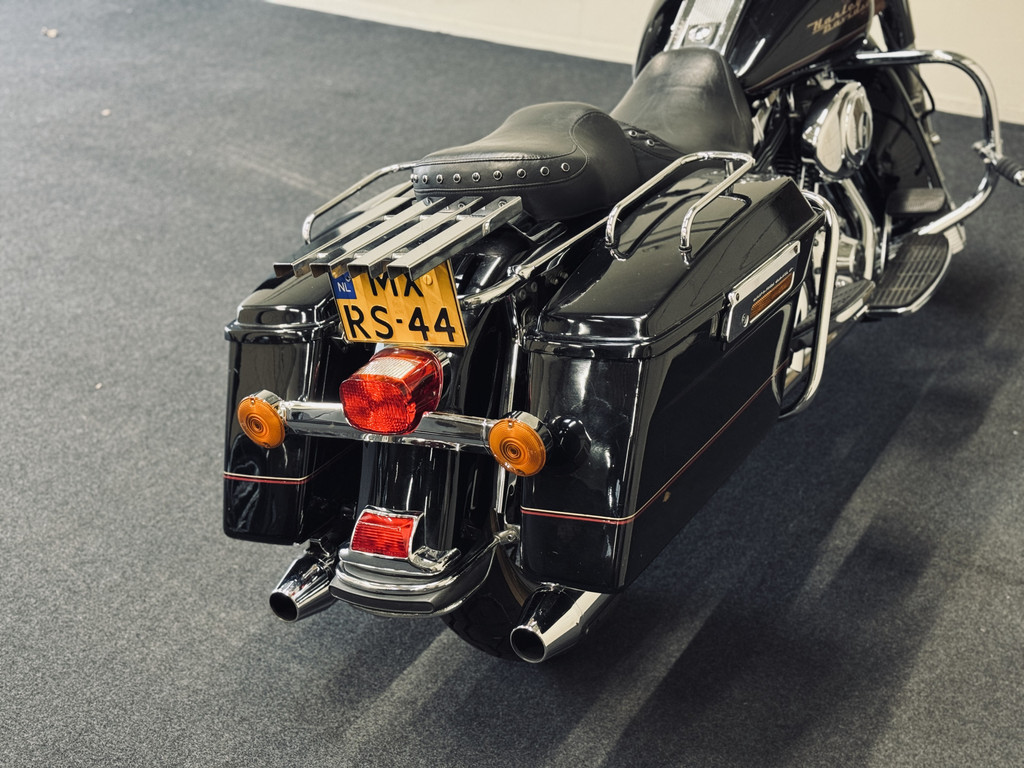 Hele fraaie Harley Davidson Road King met het gewilde motorblok en de échte HD-sound. Voorzien van schijfremmen, hardcase zijkoffers, toerenteller, etc. Deze motor is in 2012 uit Engeland gekomen en is reeds 10 jaar in bezit bij de huidige eigenaar. Ca. 500 km geleden nieuwe remblokken gekregen, achterband en oliewissel. Recent is de accu vervangen. Onderhouden bij een HD-specialist. Afneembaar windscherm is aanwezig.