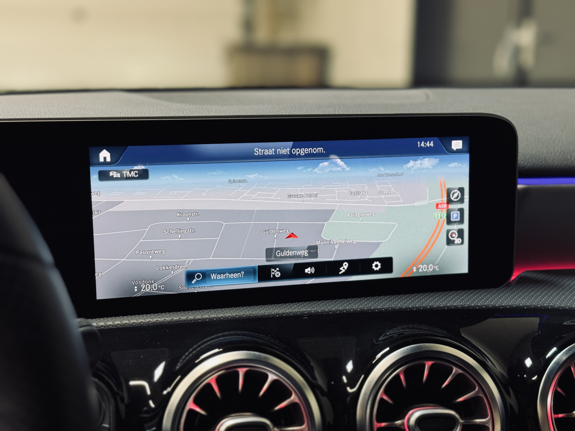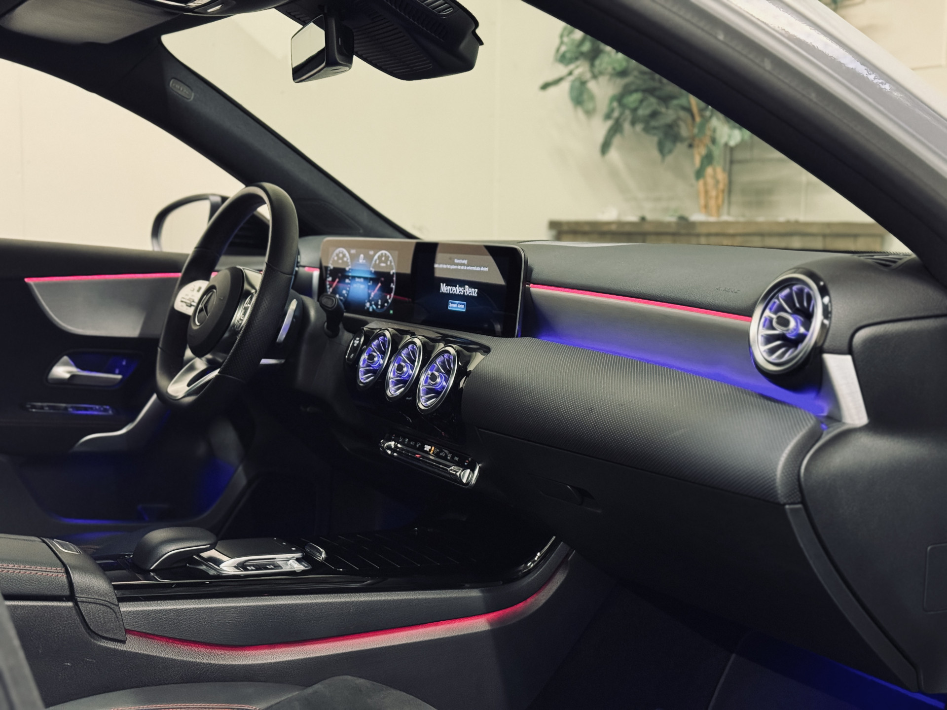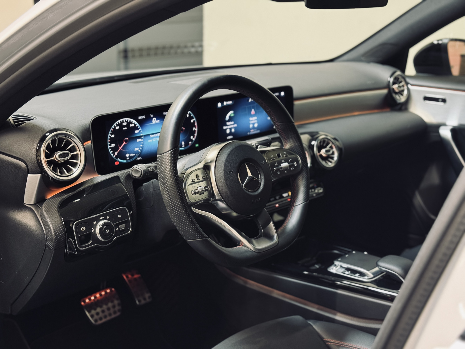 In uitzonderlijk nette staat verkerende Mercedes-Benz A-Klasse in AMG-Line uitvoering. Voorzien van een bijzonder mooie optielijst: elektrisch glazen panoramadak, Night pakket, sfeerverlichting, widescreen, stoelverwarming, keyless entry/start, Multibeam LED, achteruitrijcamera, etc. Volledig dealer onderhouden, afkomstig van de eerste eigenaar.
