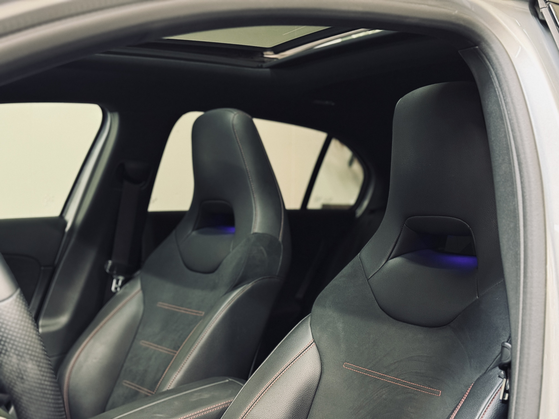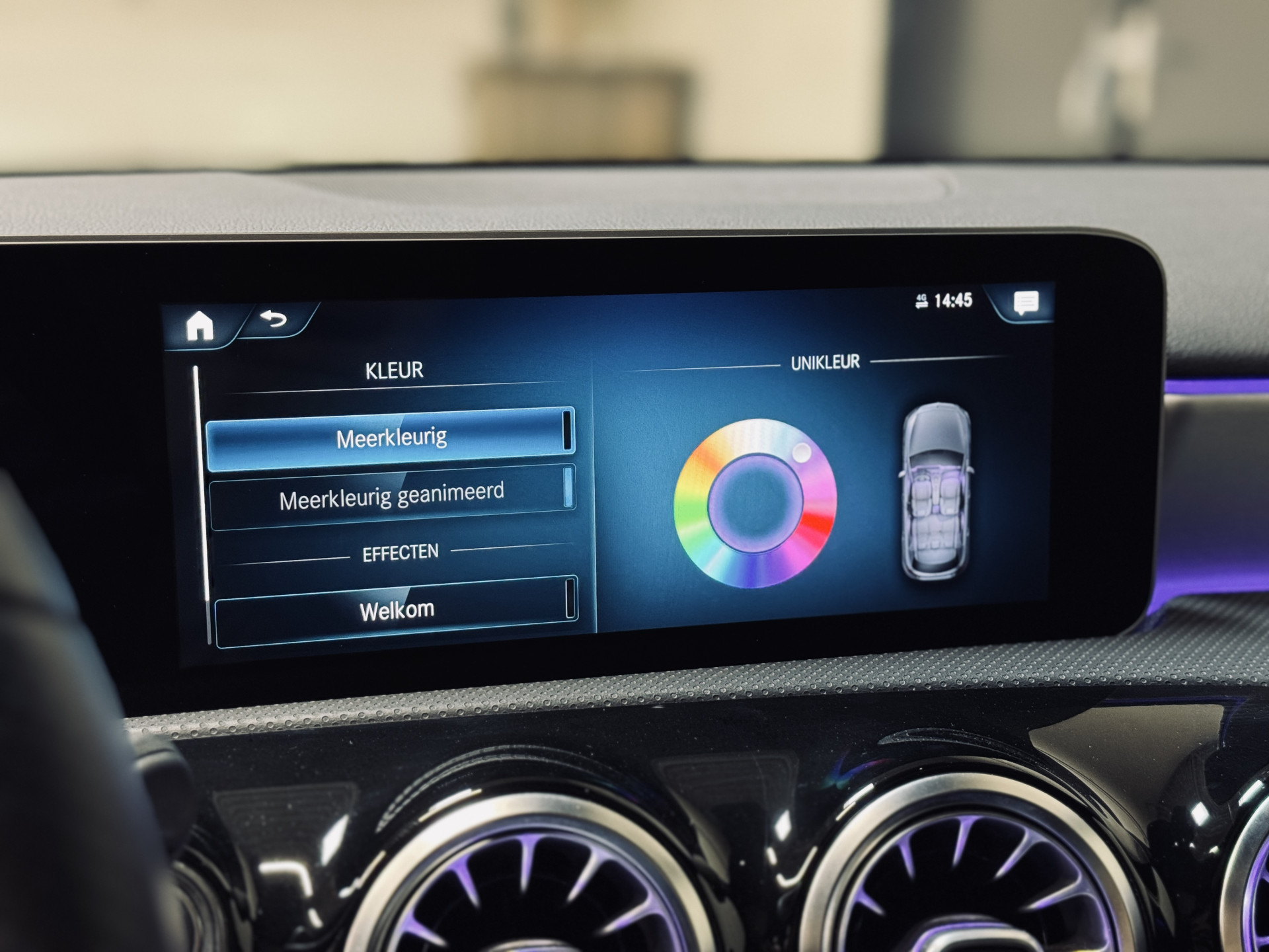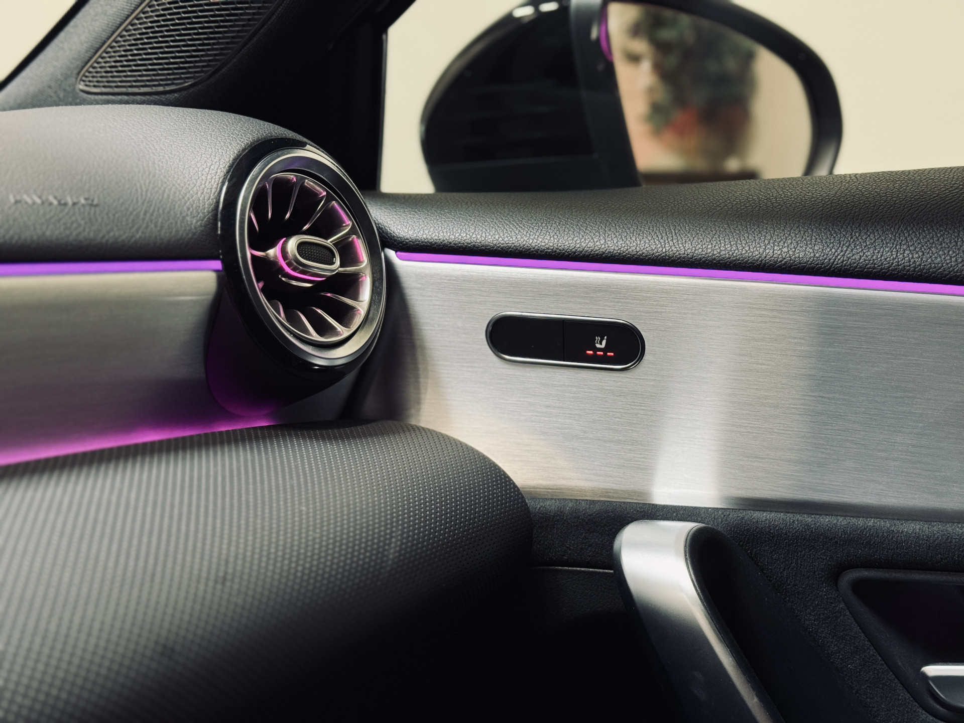 In uitzonderlijk nette staat verkerende Mercedes-Benz A-Klasse in AMG-Line uitvoering. Voorzien van een bijzonder mooie optielijst: elektrisch glazen panoramadak, Night pakket, sfeerverlichting, widescreen, stoelverwarming, keyless entry/start, Multibeam LED, achteruitrijcamera, etc. Volledig dealer onderhouden, afkomstig van de eerste eigenaar.