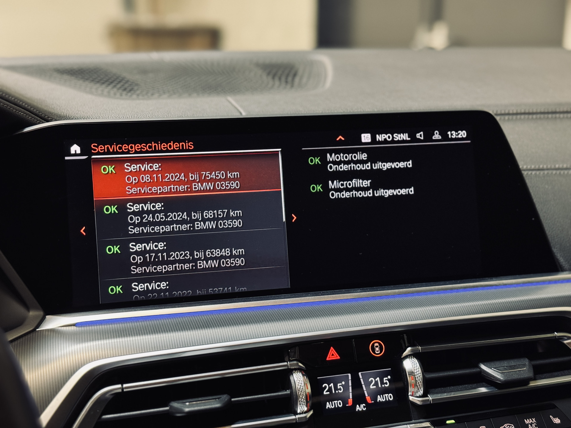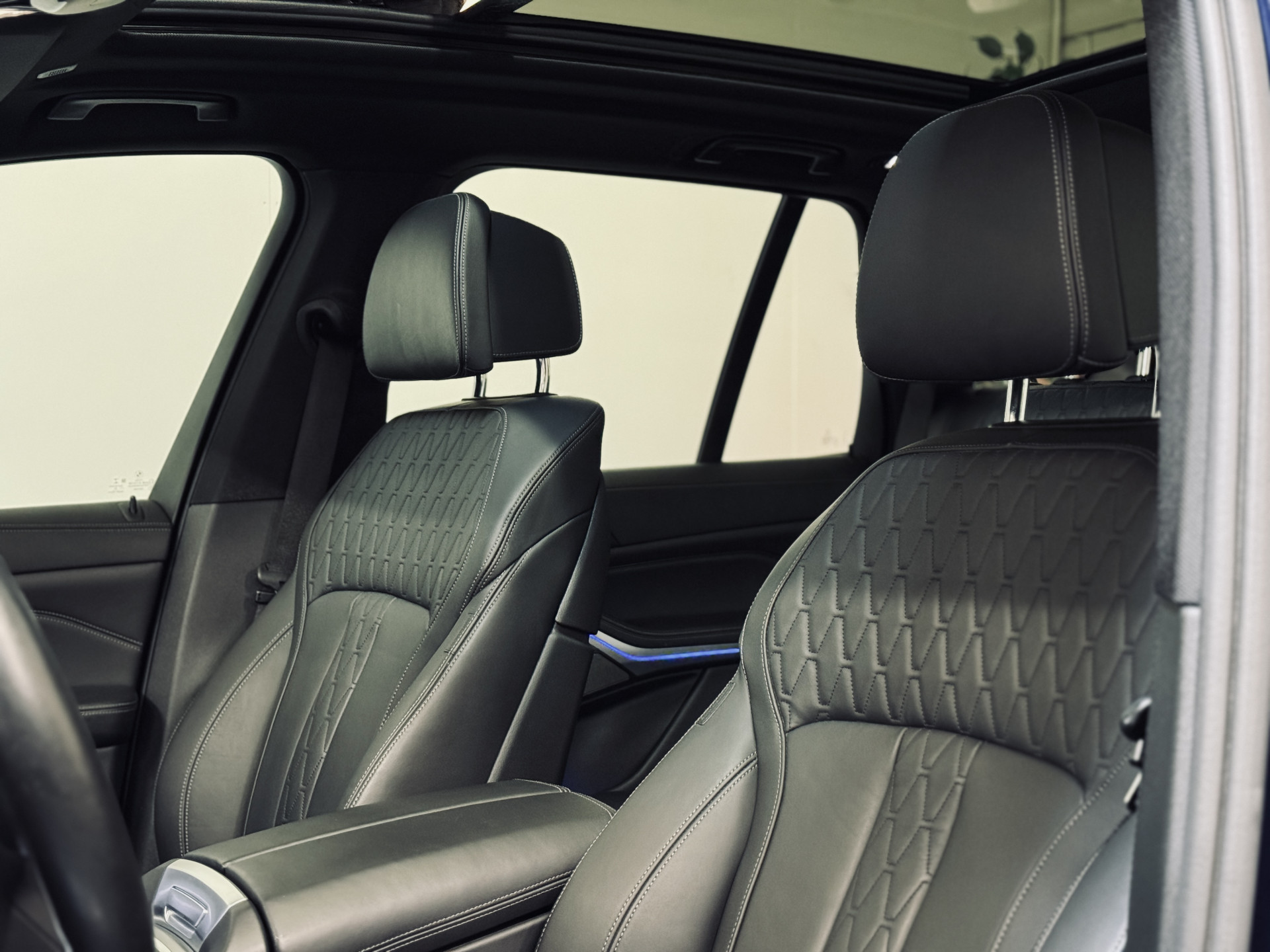 Zeer fraaie en origineel Nederlands geleverde BMW X5, welke de afgelopen 5 jaar bij een particulier in bezit is geweest en dealeronderhouden is. Voorzien van een bijzonder mooie optielijst, met o.a. M-Sportpakket, 22" Individual lichtmetalen velgen, luchtvering op beide assen, achterwielbesturing, elektrisch glazen panoramadak, comfortstoelen met Individual leder, laser-koplampen, harman/kardon, stoelverwarming voor en achter, head-up display, Driving Assistant Professional, softclose, etc.