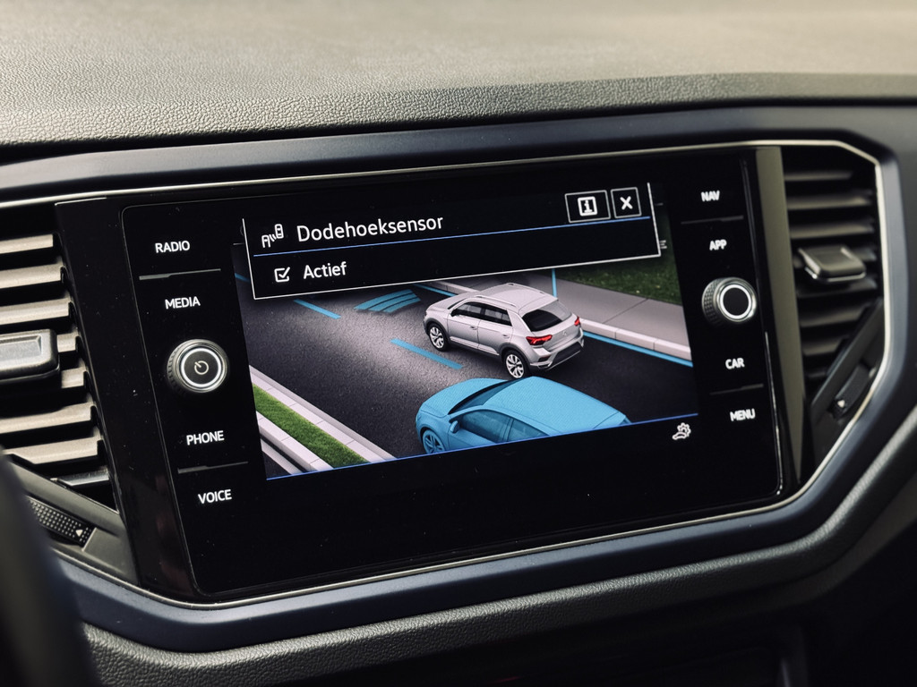 Leuke Volkswagen T-Roc met een mooie optielijst, waaronder dodehoek detectie, adaptieve cruise control, climate control, navigatie, Apple CarPlay / Android Auto, parkeersensoren voor en achter, LED koplampen en -achterlichten, elektrisch inklapbare buitenspiegels, etc.