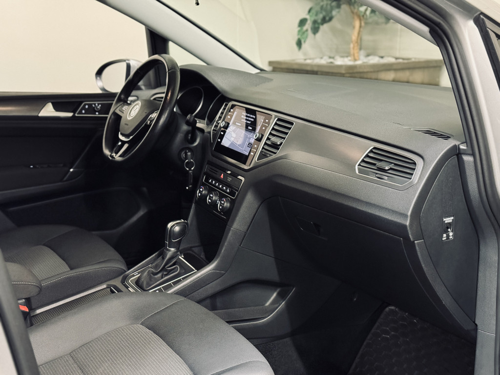 Keurige Volkswagen Golf Sportsvan 1.5 DSG met slechts 64.047 km! Uitgerust met onder andere wegklapbare trekhaak, parkeersensoren voor en achter, climate control, navigatie, stoelverwarming, etc.