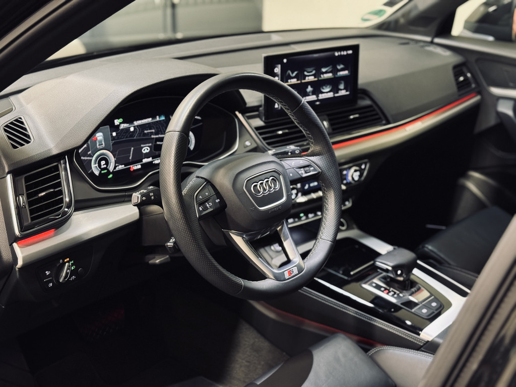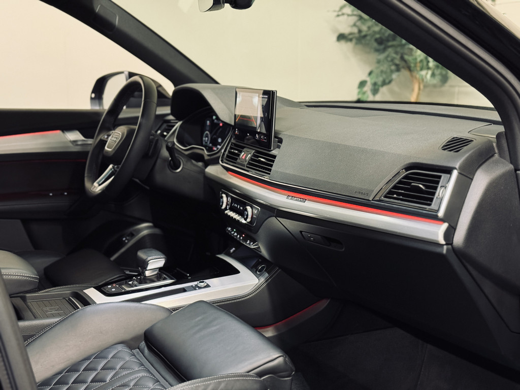 Zeer fraaie Audi Q5 50 TFSI e S Edition met S-Line interieur en exterieur. Afkomstig van de eerste eigenaar bij een Duitse Audi Dealer, aantoonbaar dealer onderhouden. Voorzien van een fraaie optielijst, waaronder Assistentiepakket City + Tour, elektrisch glazen panoramadak, fijnnappaleder met ruitmotief en S-Logo, elektrisch verstelbare stoelen met geheugen, uitgebreide sfeerverlichting, Bang & Olufsen audio, stoelverwarming voor en achter, matrix LED koplampen, 20" lichtmetalen velgen, 360 graden camera, etc.