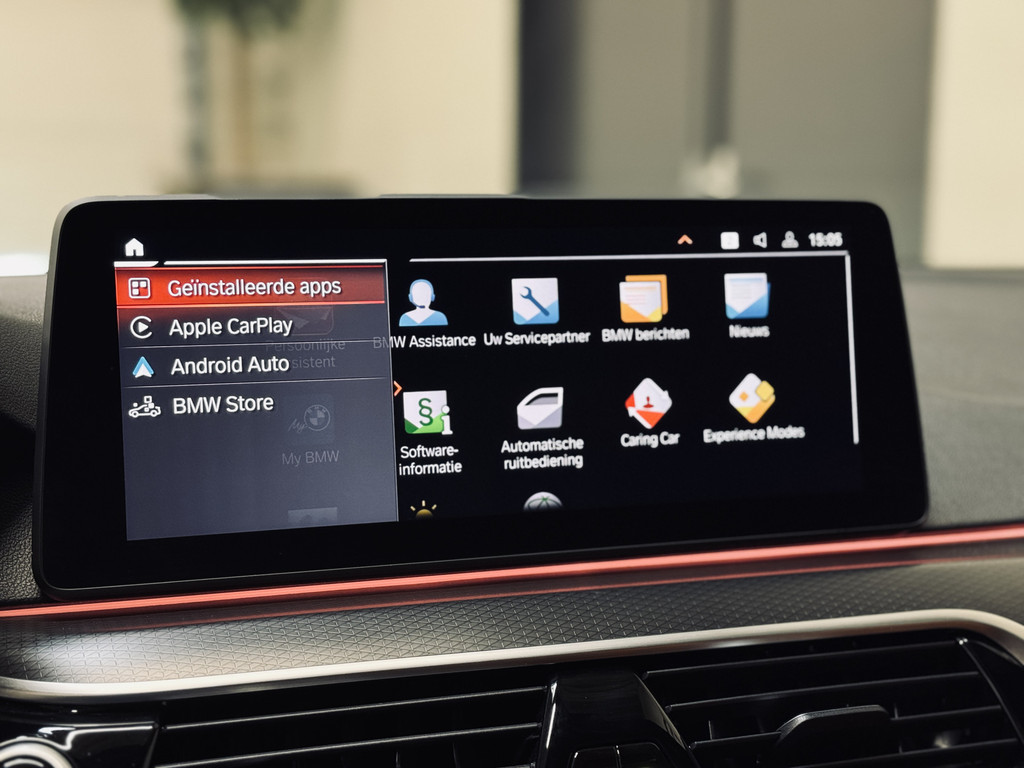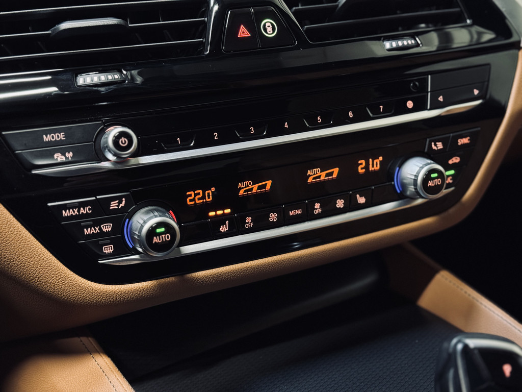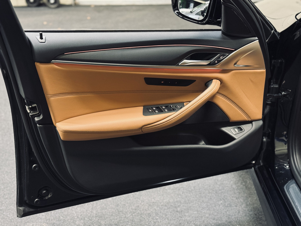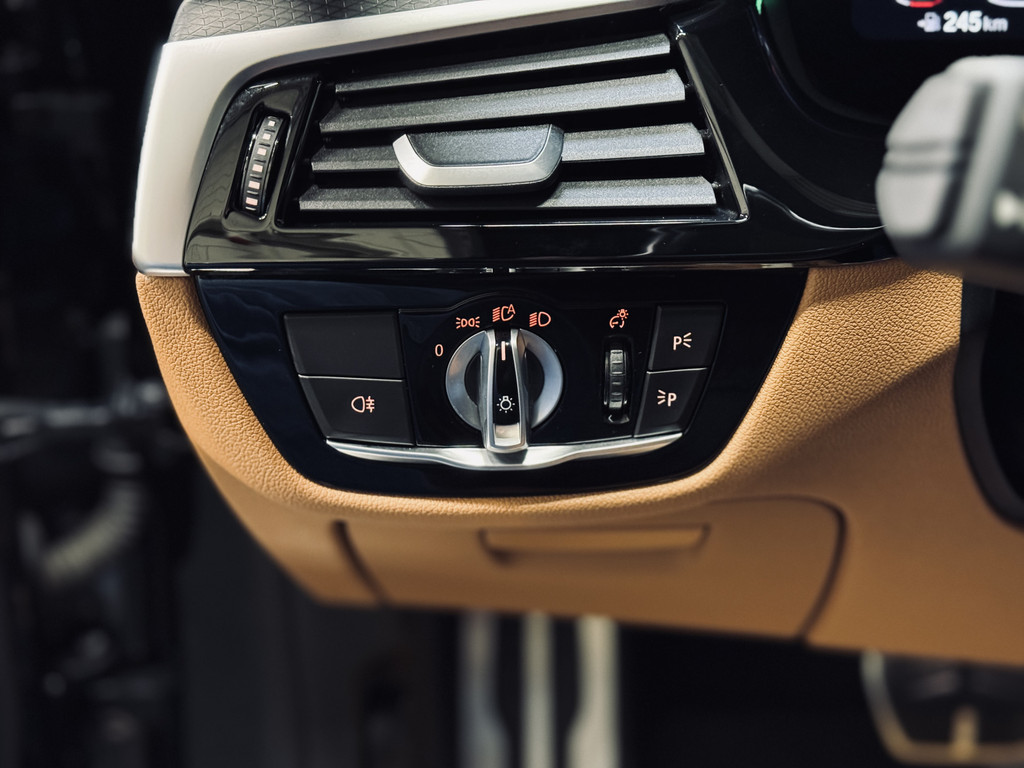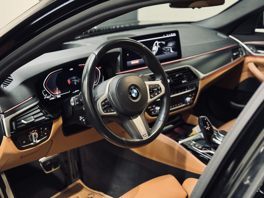 Zeer fraaie BMW 520i LCI in High Executive M-Sport Plus uitvoering. Origineel Nederlands geleverd, afkomstig van de eerste eigenaar en volledig dealer onderhouden. Uitgerust met o.a. 20" M-lichtmetalen velgen, glazen schuif/kanteldak, adaptieve LED koplampen, uitgebreide Shadowline exterieurafwerking, head-up display, draadloze telefoonlader, achteruitrijcamera, HiFi audio, elektrisch bedienbare achterklep, etc. Tegen meerprijs van € 950,- is een originele, zwarte 18" BMW winterset beschikbaar met zo goed als nieuwe GoodYear winterbanden.