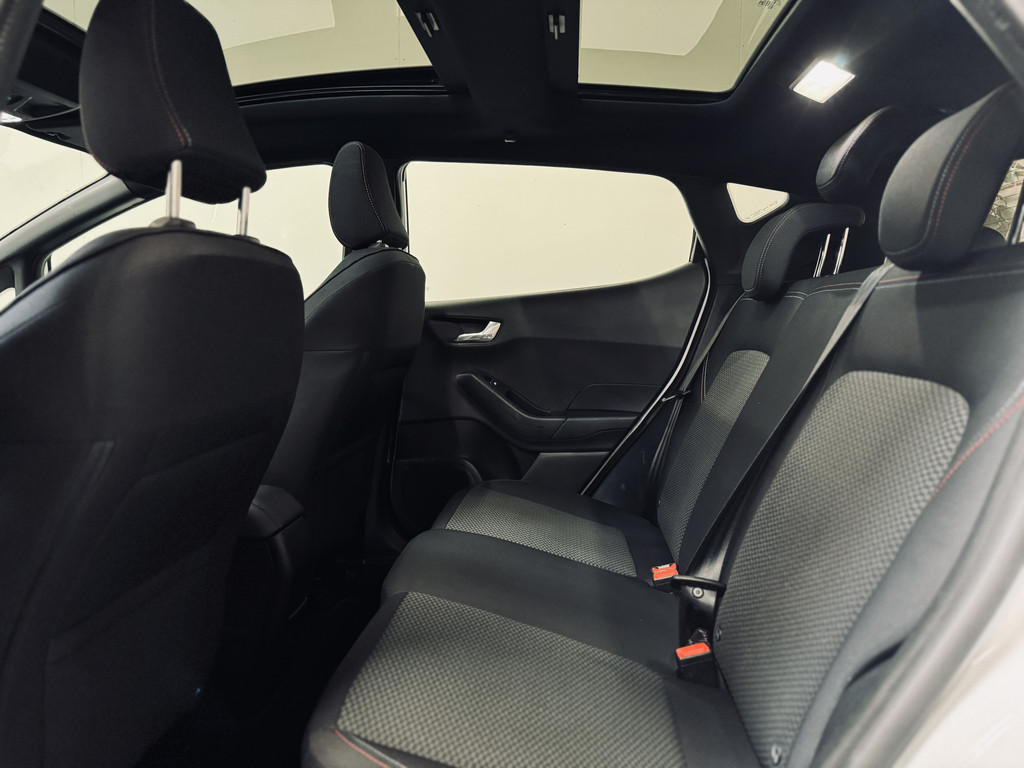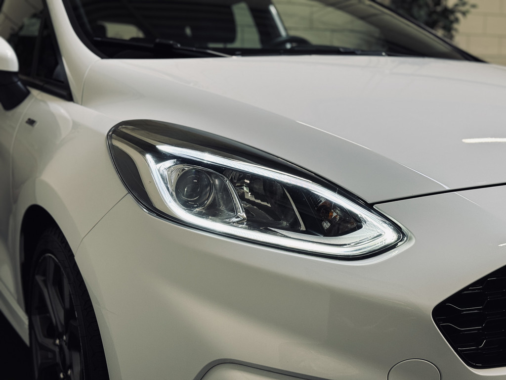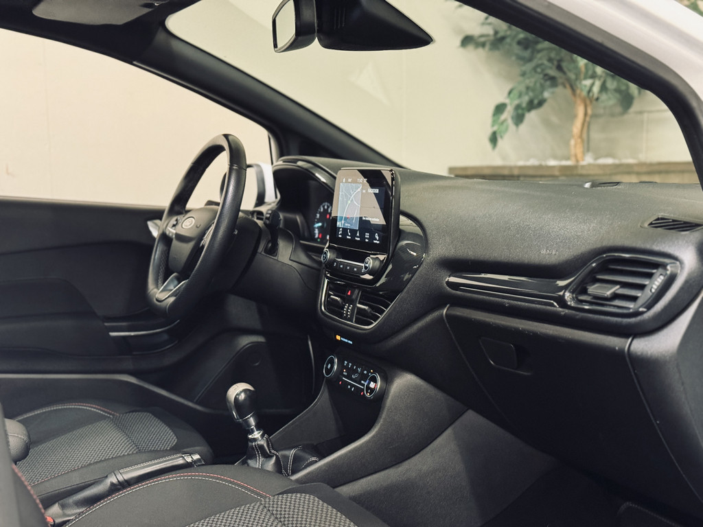 Origineel Nederlands geleverde en keurig onderhouden Ford Fiesta ST-Line met slechts 74.316 km. Voorzien van o.a. elektrisch glazen panoramadak, LED dagrijverlichting met projectorkoplampen, stoel-, stuur- en voorruitverwarming, climate control, cruise control, navigatie, parkeersensoren, etc.