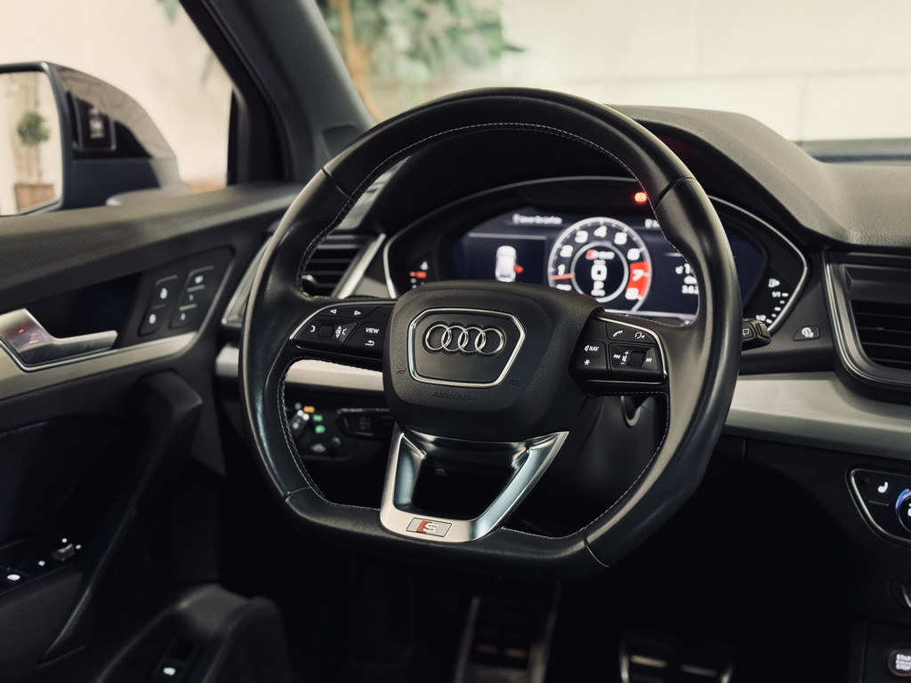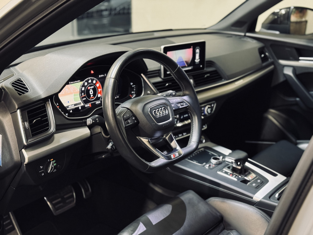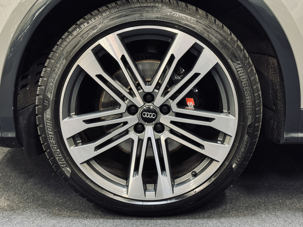 Hele fraaie Audi SQ5 in de populaire kleur Quantum Grey. Voorzien van de juiste opties, waaronder 21" lichtmetalen velgen, Valcona leder met ruitmotief, Bang & Olufsen audio, elektrisch glazen panoramadak, elektrisch verstelbare stoelen met geheugen, virtual cockpit, keyless entry/start, elektrische achterklep, stoelverwarming, etc. Recent voorzien van een Stage 1 Tuning op maat + testbank en DSG Tuning (rapport aanwezig). Momenteel een vermogen van bijna 400 PK en 670 Nm koppel. De auto wordt tevens geleverd inclusief Pirelli zomerbanden en Bridgestone winterbanden.