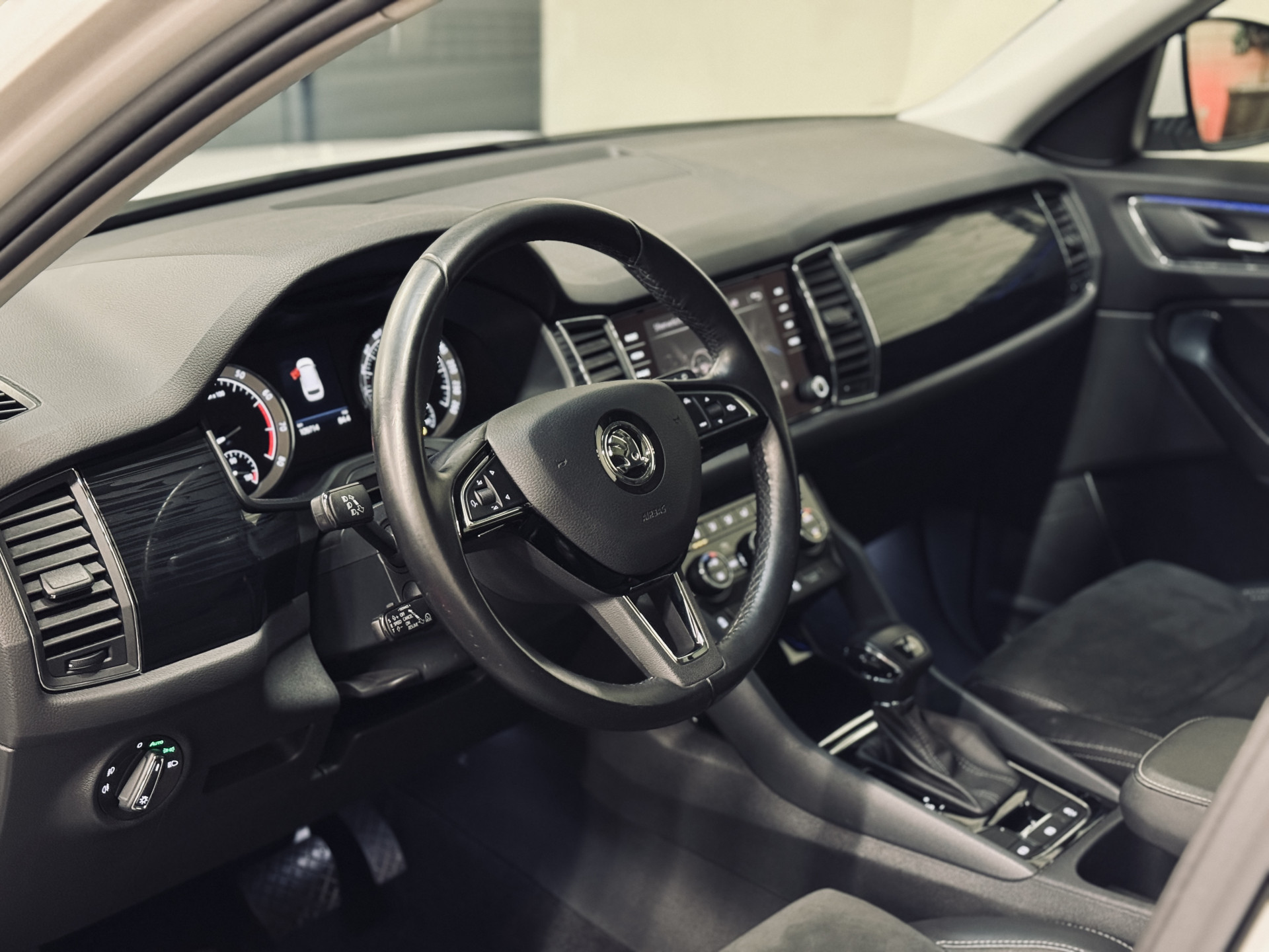 Bijzonder nette, volledig aantoonbaar dealer onderhouden Skoda Kodiaq. Uitgerust met mooie opties, waaronder elektrisch glazen panoramadak, leder/alcantara bekleding, elektrisch verstelbare bestuurdersstoel met geheugen, wegklapbare trekhaak, elektrische achterklep, keyless entry, 360 camera, navigatie, adaptieve cruise control, dodehoek controle, CarPlay, stoelverwarming, etc.