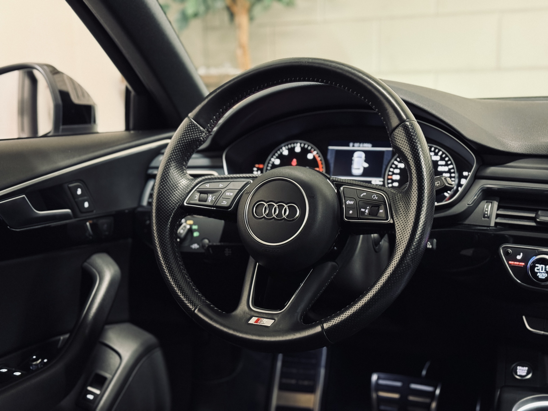Hele frisse Audi A4 Avant 1.4 TFSI automaat, uitgevoerd met S-Line interieur en -exterieur. Stoere uitstraling door de 19" Rotor lichtmetalen velgen, zwart optiekpakket en privacyglas.