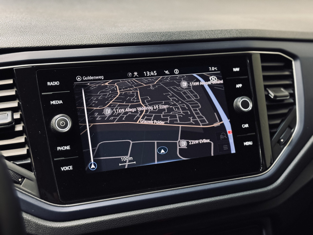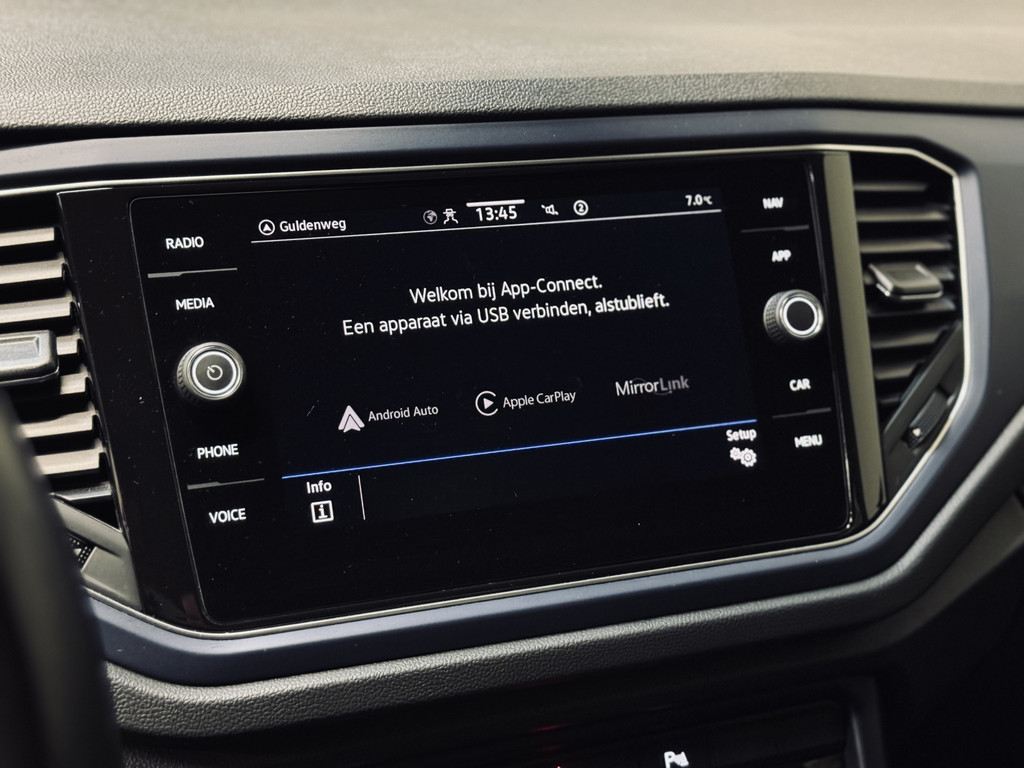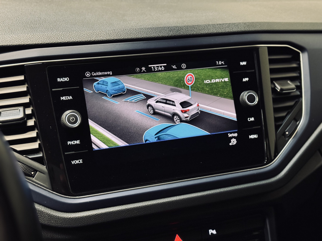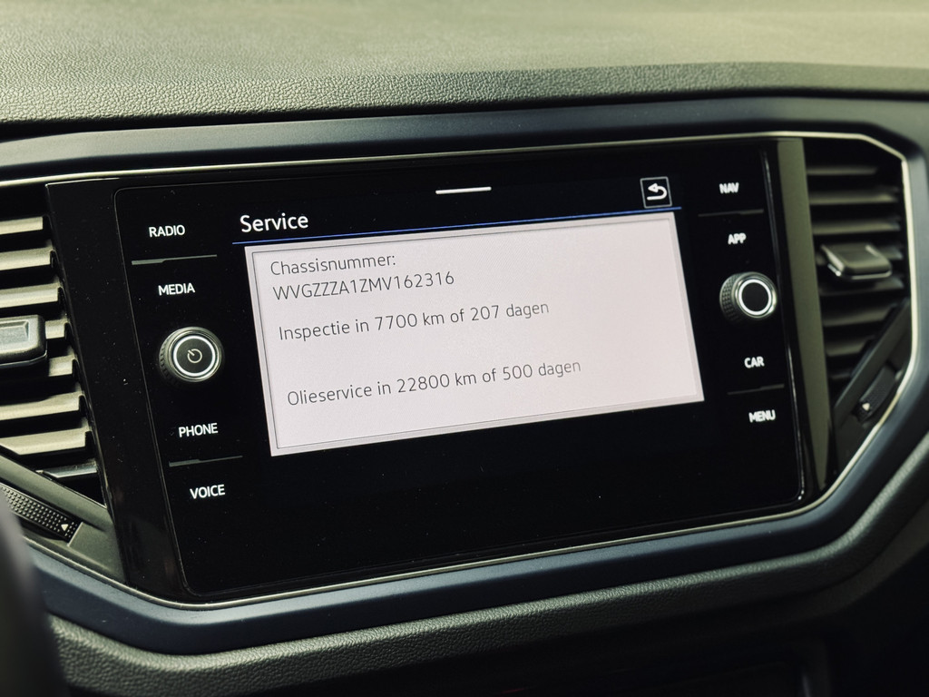 Leuke Volkswagen T-Roc met een mooie optielijst, waaronder dodehoek detectie, adaptieve cruise control, climate control, navigatie, Apple CarPlay / Android Auto, parkeersensoren voor en achter, LED koplampen en -achterlichten, elektrisch inklapbare buitenspiegels, etc.
