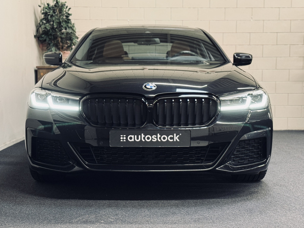 Zeer fraaie BMW 520i LCI in High Executive M-Sport Plus uitvoering. Origineel Nederlands geleverd, afkomstig van de eerste eigenaar en volledig dealer onderhouden. Uitgerust met o.a. 20" M-lichtmetalen velgen, glazen schuif/kanteldak, adaptieve LED koplampen, uitgebreide Shadowline exterieurafwerking, head-up display, draadloze telefoonlader, achteruitrijcamera, HiFi audio, elektrisch bedienbare achterklep, etc. Tegen meerprijs van € 950,- is een originele, zwarte 18" BMW winterset beschikbaar met zo goed als nieuwe GoodYear winterbanden.