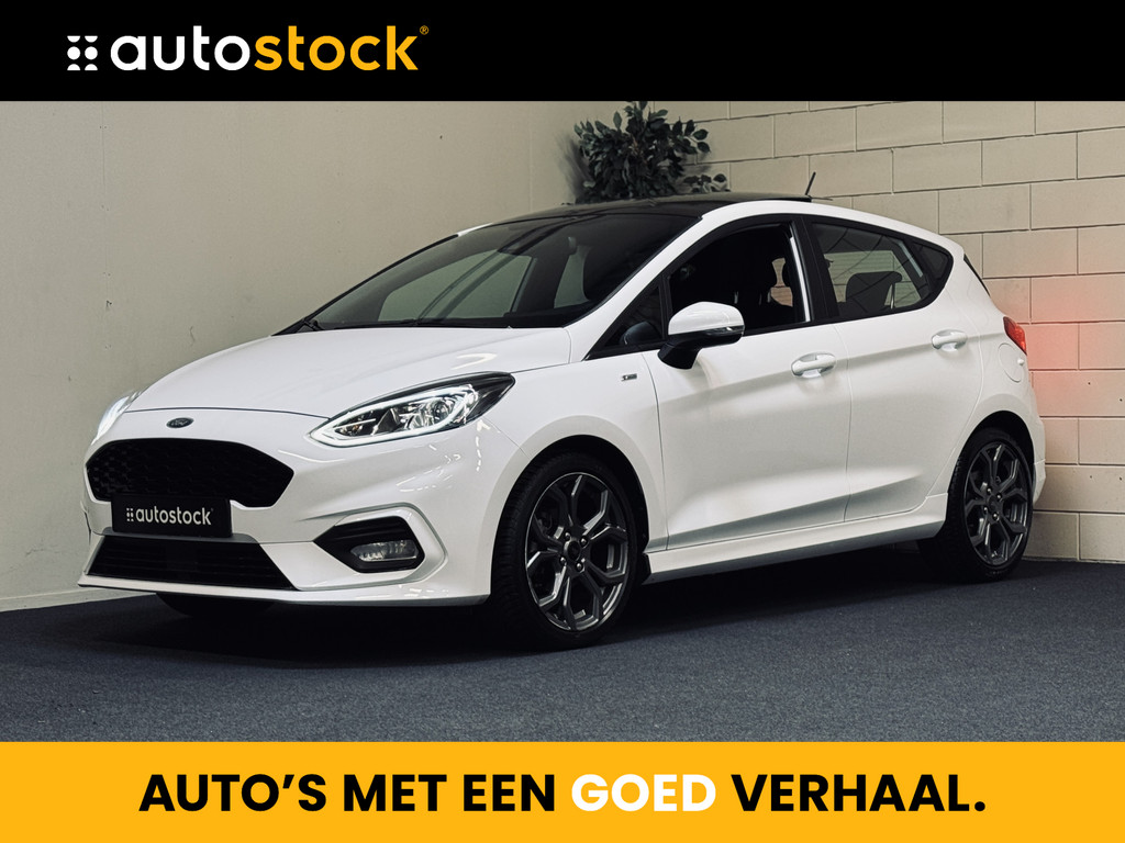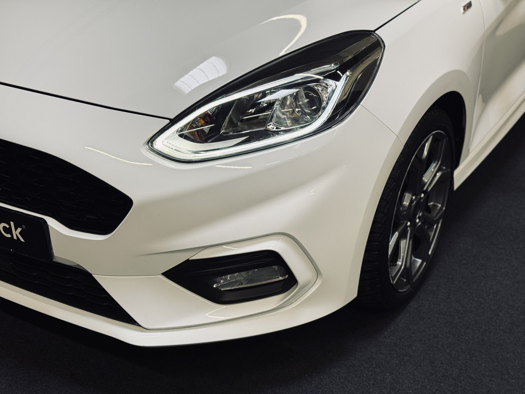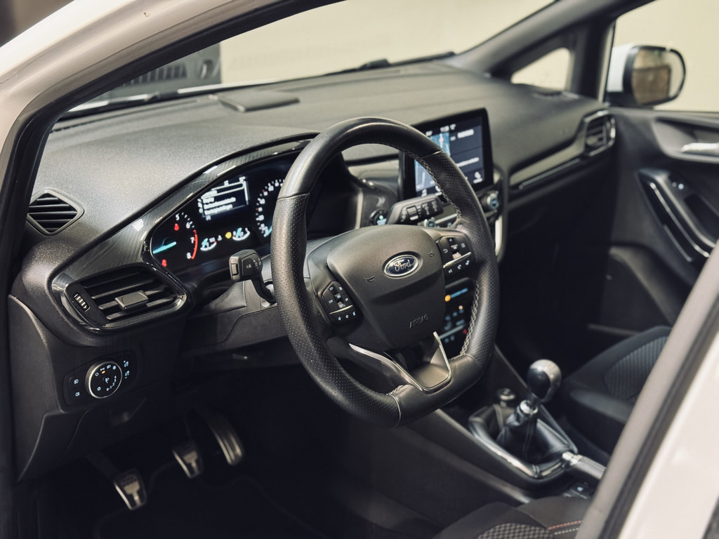 Origineel Nederlands geleverde en keurig onderhouden Ford Fiesta ST-Line met slechts 74.316 km. Voorzien van o.a. elektrisch glazen panoramadak, LED dagrijverlichting met projectorkoplampen, stoel-, stuur- en voorruitverwarming, climate control, cruise control, navigatie, parkeersensoren, etc.
