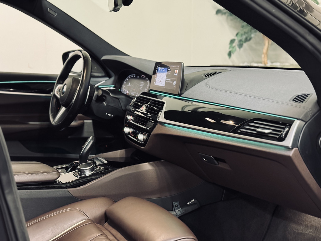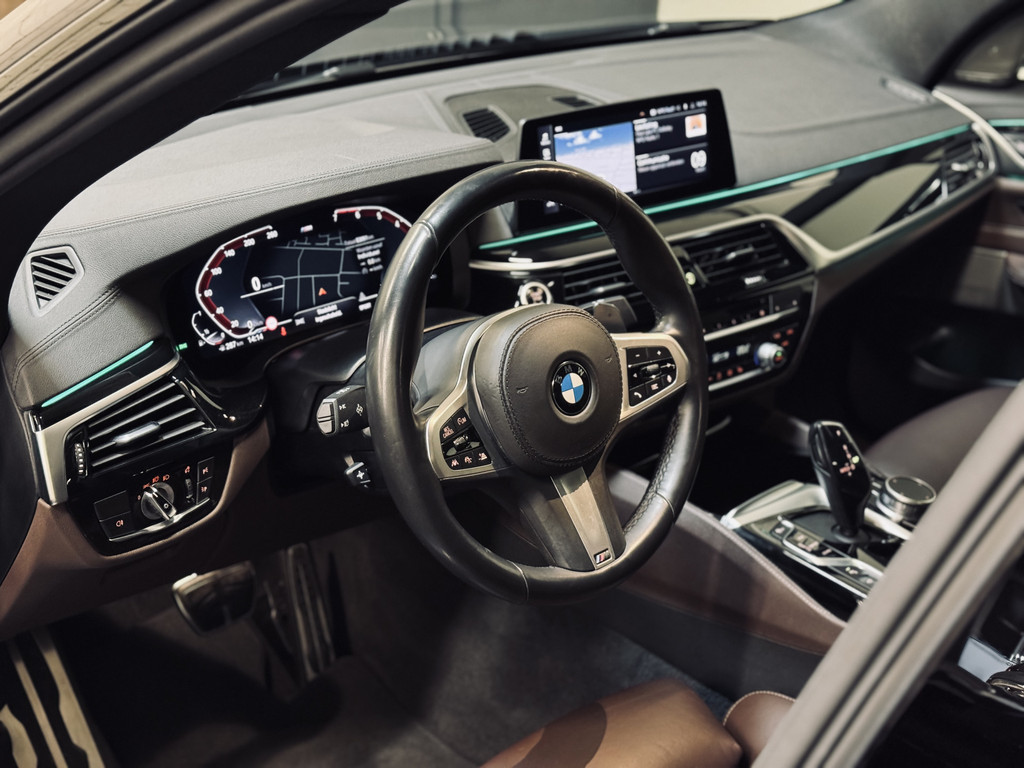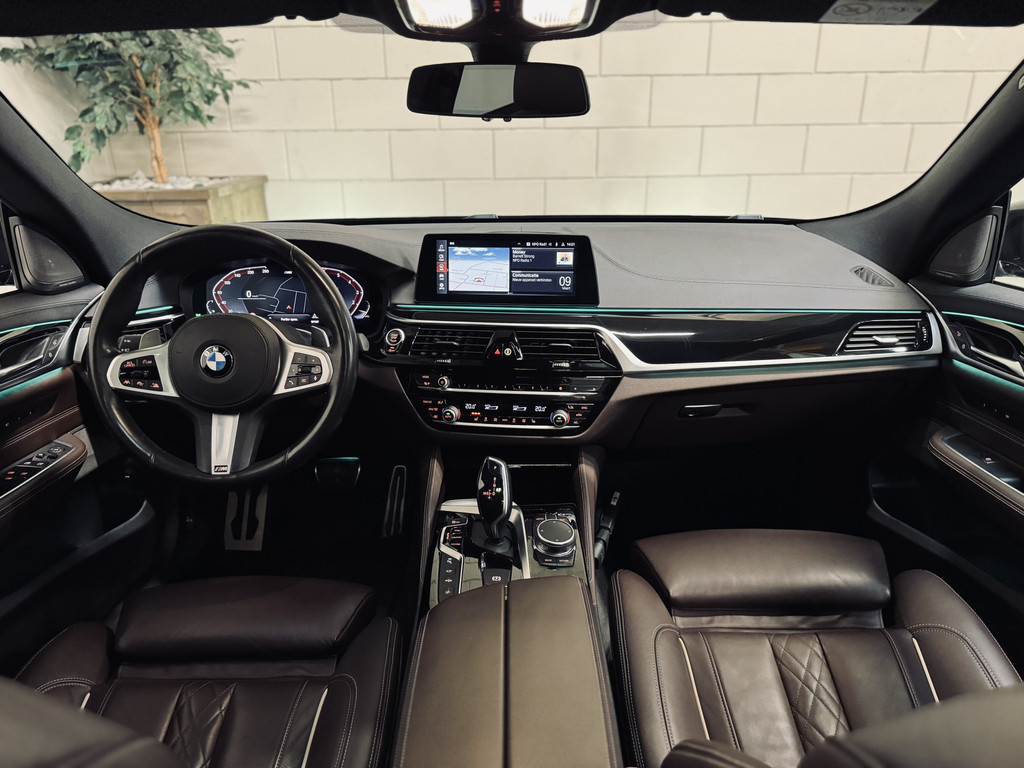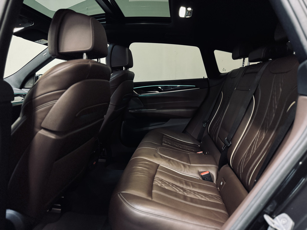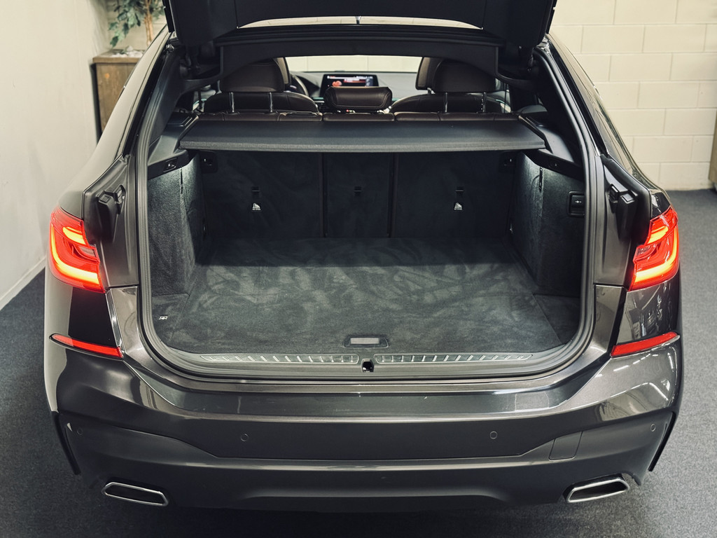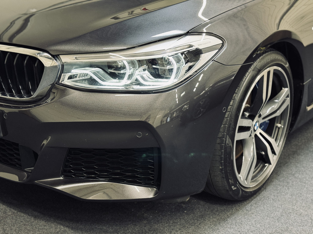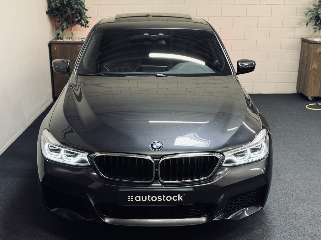 Hele fraaie, origineel Nederlands geleverde BMW 6-Serie Gran Turismo. Uitgevoerd als High Executive met M-Sportpakket. Gespoten in Sophisto Grey met exclusief nappaleder in Mokka. Uitgerust met o.a. CoPilot Pack (o.a. adaptieve cruise control met stuurhulp, rondomzichtcamera, keyless entry, BMW Display Key met autonome parkeerfunctie, dodehoekdetectie met correctie), luchtvering, achterasbesturing (Integral Active Steering), elektrisch glazen panoramadak, Harman Kardon Surround Sound, 20" lichtmetalen velgen, etc.