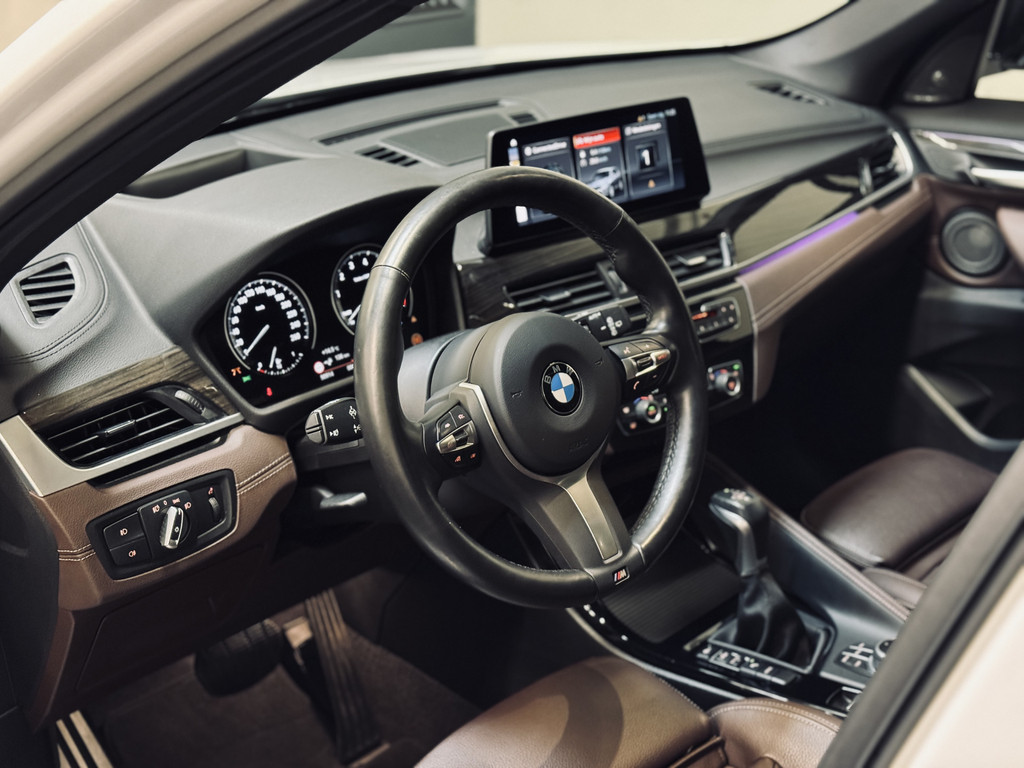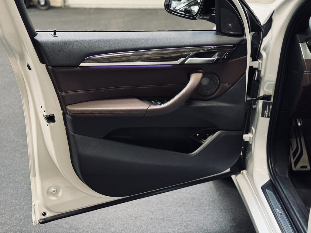 Hele fraaie en bijzonder complete BMW X1 xDrive 25e in High Executive-uitvoering met M-Sportpakket. In bijzonder nette staat en volledig aantoonbaar volgens schema onderhouden. Voorzien van o.a. lederen bekleding, elektrisch verstelbare stoelen met geheugen, afneembare trekhaak, adaptieve cruise control, stoelverwarming, achteruitrijcamera, harman/kardon audio, elektrische achterklep, elektrisch glazen panoramadak, comfort access, etc.